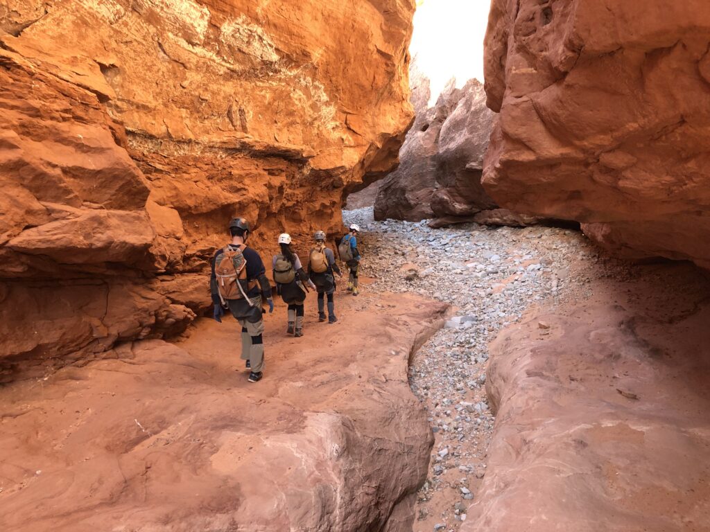 • Must be able to travel for a minimum of 4 hours through tight canyon system requiring stemming, chimneying, scrambling and advanced hiking on steep grades