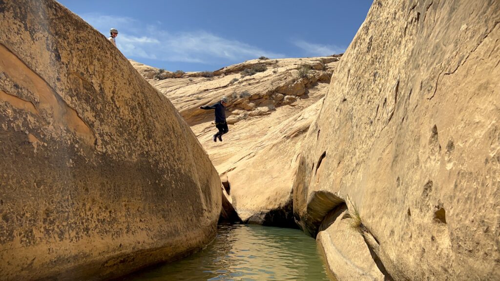 - Technical: 2.5 miles of moderate hiking, steep grades, easy scrambling, multiple pothole swims, rappel up to 80ft, rope-assisted down climbs